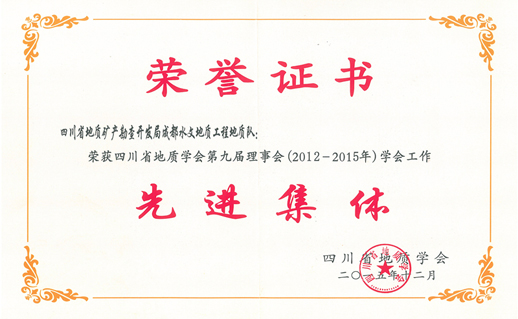 我隊(duì)榮獲第九屆四川省地質(zhì)學(xué)會(huì)先進(jìn)集體榮譽(yù)稱號(hào)