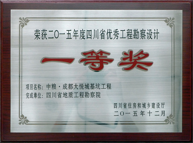 國道213、317線都江堰至汶川公路廟子坪岷江特大橋詳細(xì)勘察階段工程地質(zhì)勘察項(xiàng)目獲得全國優(yōu)秀工程勘察設(shè)計(jì)行業(yè)獎二等獎,成都水文隊(duì)生產(chǎn)科研用房和經(jīng)濟(jì)適用房(5幢綜合樓)水源熱泵中央空調(diào)工程水文地質(zhì)勘察、中糧·成都大悅城基坑工程獲得省工程勘察設(shè)計(jì)“四優(yōu)”一等獎,歐尚購物中心工程勘察、松潘縣川主寺鎮(zhèn)第二自來水廠水源地綜合水文地質(zhì)勘察報(bào)告(山巴——川盤橋段)獲得省工程勘察設(shè)計(jì)“四優(yōu)”二等獎,潤慶·山予城一期巖土工程勘察報(bào)告獲省工程勘察設(shè)計(jì)“四優(yōu)”三等獎。