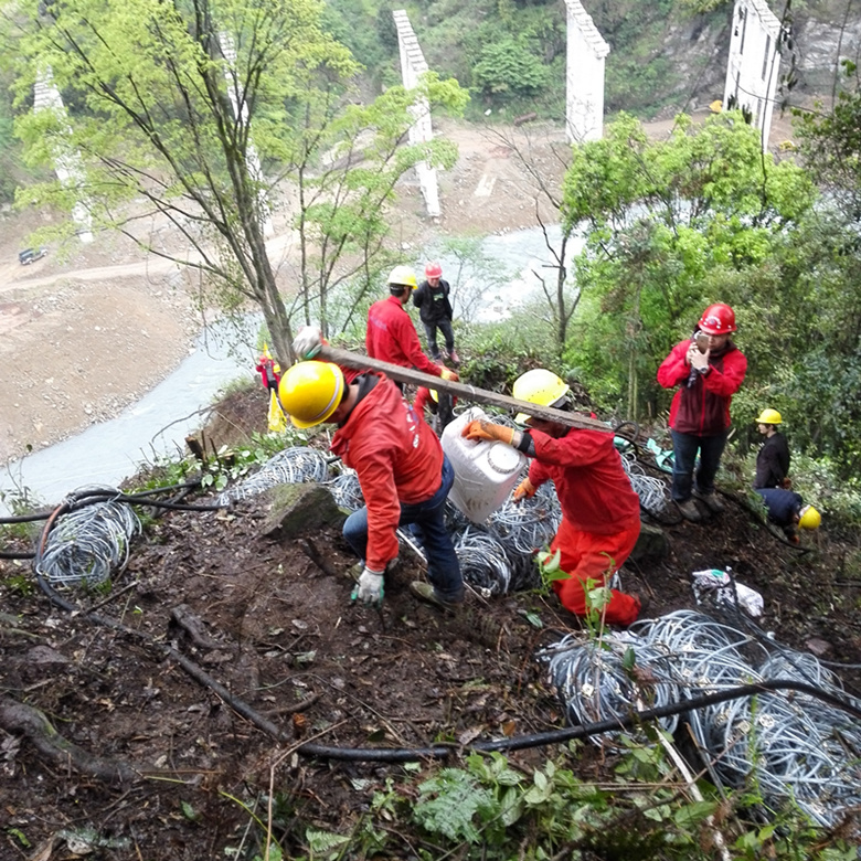 4月23日緊急進場,5月2日提前完成搶險工程任務(wù),完成了9000 m2的主動防護網(wǎng)安裝、6000 m2的坡面清危、6000m2的坡面混凝土噴射工作。如果不是一支素質(zhì)過硬,作風(fēng)優(yōu)良,敢打硬仗的專業(yè)隊伍,在這樣的重大任務(wù)面前,短短10天完成搶險,無論如何也難以完成。正是因為經(jīng)歷了丹巴建設(shè)街滑坡應(yīng)急搶險工程、文家溝特大山洪泥石流應(yīng)急搶險工程、“4.20”地震寶興縣冷木溝、教場溝泥石流應(yīng)急搶險工程的歷練,面對此次滑坡?lián)岆U,作為四川省地質(zhì)災(zāi)害防治工程的主力軍,地質(zhì)災(zāi)害勘查設(shè)計實力過硬、應(yīng)急搶險經(jīng)驗豐富充分發(fā)揮了作用。項目組精心籌劃、合理安排、科學(xué)分工,全體人員團結(jié)一致、緊密合作,有條不紊,充滿信心,盡顯“國土衛(wèi)士、地礦鐵軍”的英雄本色。