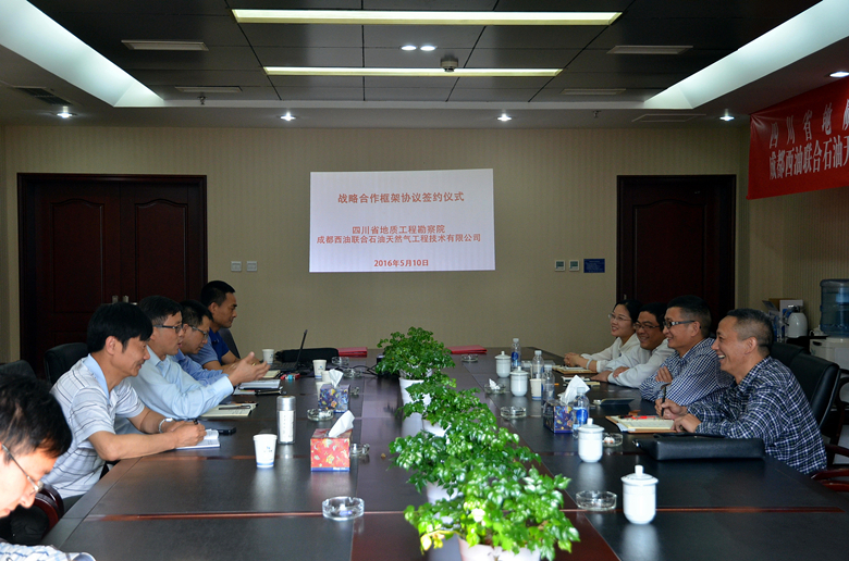 5月10日,在我院321會(huì)議室舉行了四川省地質(zhì)工程勘察院與成都西油聯(lián)合石油天然氣工程技術(shù)有限公司戰(zhàn)略合作框架協(xié)議簽署儀式。院長安世澤、黨委書記陽光輝、水文地質(zhì)工程公司總經(jīng)理張恒,成都西油聯(lián)合石油天然氣工程技術(shù)有限公司總裁牟德剛、技術(shù)總監(jiān)廖忠會(huì)等出席了簽約儀式。