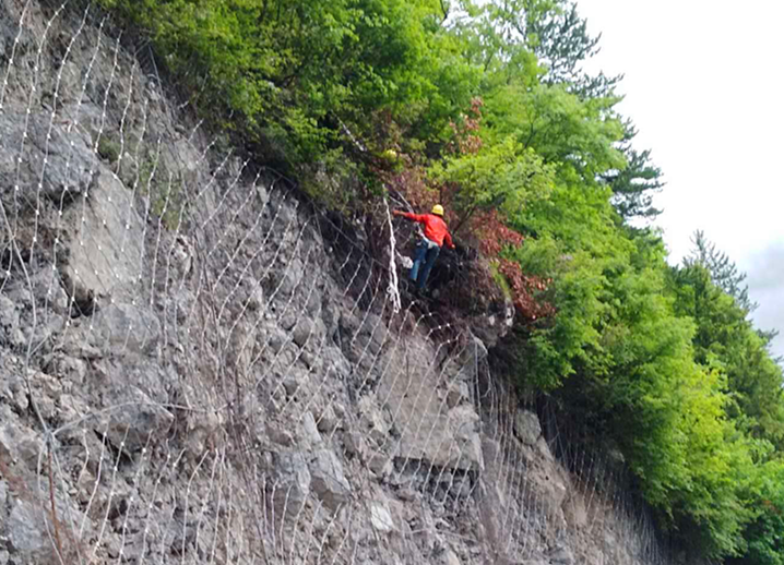 排危人員首先使用液壓鉗剪斷已經(jīng)破壞的被動(dòng)網(wǎng),再用撬棍、鋼釬清理危巖體周邊的松動(dòng)土石和樹(shù)枝,隨即使用撬棍從危巖后部開(kāi)始撬動(dòng)大危巖。清理過(guò)程中,兩側(cè)攔停了大量的車(chē)輛和人員,面對(duì)急于通過(guò)的人員,管制人員耐心勸說(shuō),阻止想要冒險(xiǎn)通過(guò)的人員車(chē)輛,確保排危安全。
