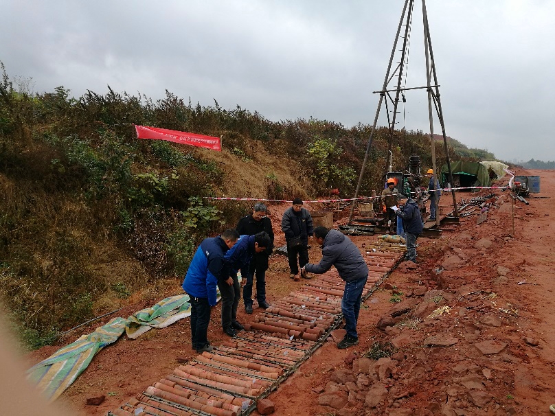 隨后,錢江澎、劉宗祥一行對項目2018年先期啟動塊的四個鉆孔進(jìn)行了質(zhì)量檢查。通過對現(xiàn)場鉆探點的全面檢查,錢總強調(diào)一是要高度重視生產(chǎn)施工過程的安全問題,加強項目規(guī)范化管理;二是在野外調(diào)查過程中要確定填圖分組、分段標(biāo)志,統(tǒng)一風(fēng)化程度判別標(biāo)志;三是鉆探工作需標(biāo)準(zhǔn)化編錄格式,及時采集巖土樣,同時對特殊巖芯樣可采用特寫、小視頻記錄方式保存。