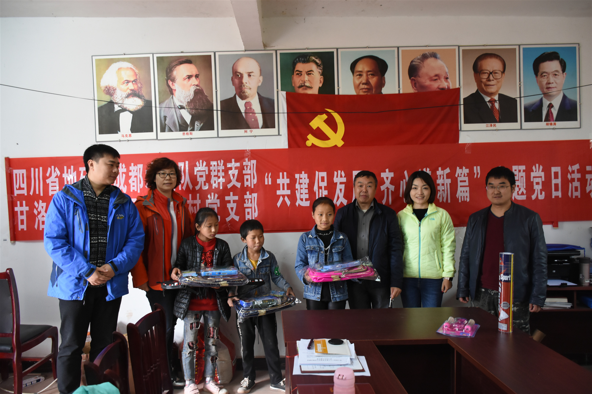 11月15日-16日,為切實加強基層黨組織建設(shè),助推幫扶地打好脫貧攻堅戰(zhàn),成都水文隊黨委書記謝大軍一行到對口幫扶的甘洛縣田壩鎮(zhèn)玉門口村開展“四川省地礦局成都水文隊黨群支部與甘洛縣田壩鎮(zhèn)玉門口村黨支部 共建促發(fā)展 齊心譜新篇”主題黨日活動。政工部主任、隊黨群支部書記李彥婷,財務(wù)部主任朱敬萍,市場部主任黃磊參加活動。