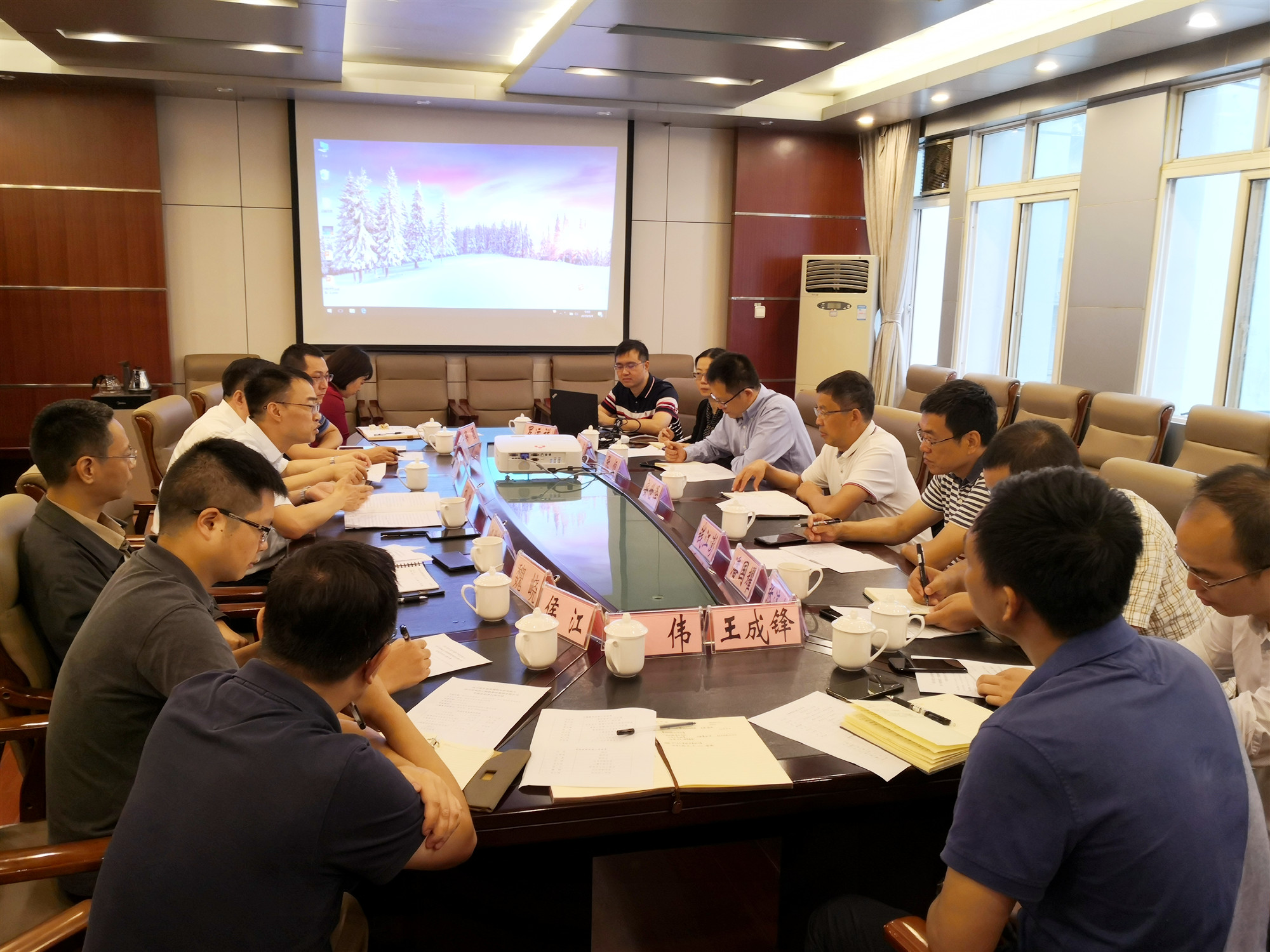 在技術(shù)交流環(huán)節(jié),水文公司和天晟源公司分別就地下水科學(xué)與工程專(zhuān)業(yè)、環(huán)境保護(hù)板塊業(yè)務(wù)的發(fā)展和成績(jī)進(jìn)行了展示。省環(huán)科院土壤所就土壤、地下水方向的重大科研任務(wù)和人才建設(shè)情況等進(jìn)行了介紹。
