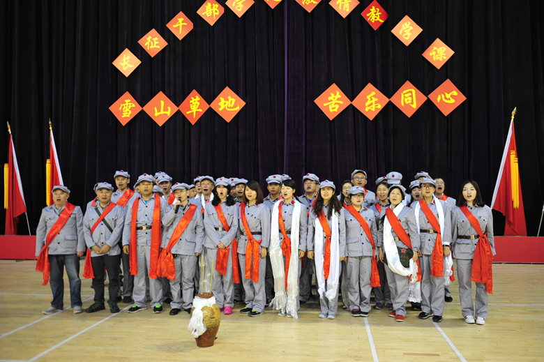培訓(xùn)期間,隊伍打紅旗,學(xué)員穿紅軍服、戴紅軍帽、背紅軍包、纏綁腿、系皮帶、戴?;?,出行列隊整齊有序,成為一支紅色勁旅。學(xué)員們通過“吃紅軍飯、唱紅軍歌、走紅軍路”的培訓(xùn)形式,經(jīng)過長征歷史理論教學(xué)、參觀馬爾康紅軍長征紀(jì)念館現(xiàn)場教學(xué)、過草地穿越日干喬大沼澤體驗教學(xué),學(xué)習(xí)紅軍隊伍的堅強斗志,體驗紅軍長征中的艱難困苦。